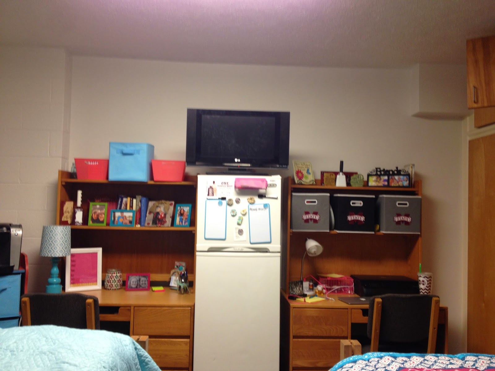 My new home! I love my room in all its smallness! Critz 309 is my home! I can't wait for the next four years at Mississippi State with all the memories, cowbells, friends, and games! I have already played battleship with my roommate, decorated my cowbells, gone to my first class, picked a church, gone to the BSU, gotten a new family at the BSU, and made tons of new friends!!!